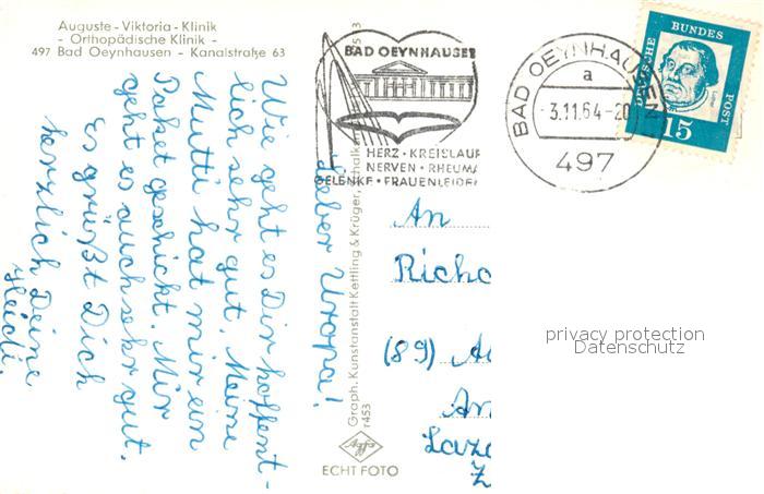 73034628 alte Postkarte Bad Oeynhausen Auguste Viktoria Klinik postalisch gelaufen Erhaltung siehe scans [KathaD81] KatCode: 11110005770004