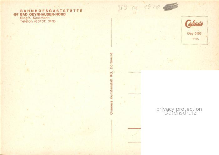 73569941 Bad Oeynhausen Bahnhofsgaststaette Terrasse postalisch nicht gelaufen Erhaltung siehe scans [WerneD78] KatCode: 11110005770004