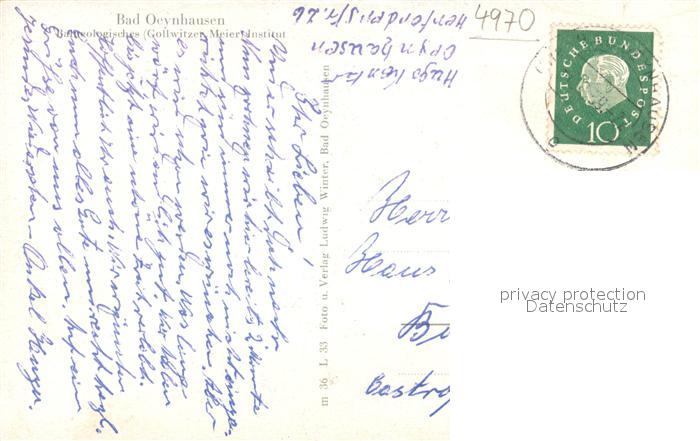 73694004 alte Postkarte Bad Oeynhausen Balneologisches Institut Gollwitzer Meier postalisch gelaufen Erhaltung siehe scans [WerneD78] KatCode: 11110005770004