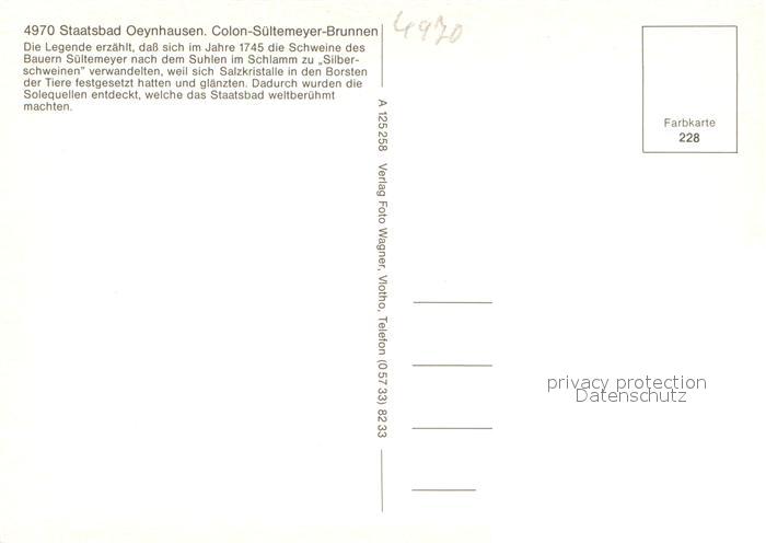 73720000 Bad Oeynhausen Cafe Ellinghaus Colon Sueltemeyer Brunnen Skulpturen postalisch nicht gelaufen Erhaltung siehe scans [FriedD77] KatCode: 11110005770004