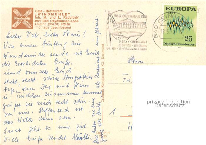 73641012 alte Postkarte Bad Oeynhausen Cafe Restaurant Windmuehle postalisch gelaufen Erhaltung siehe scans [WerneD78] KatCode: 11110005770004