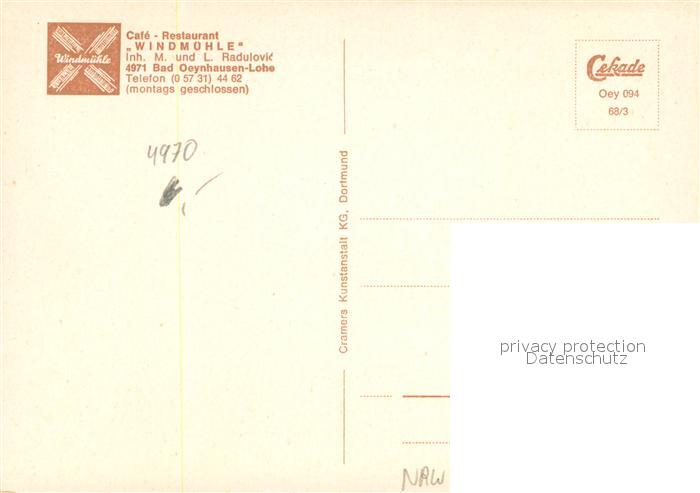 73641015 Bad Oeynhausen Cafe Restaurant Windmuehle postalisch nicht gelaufen Erhaltung siehe scans [WerneD78] KatCode: 11110005770004