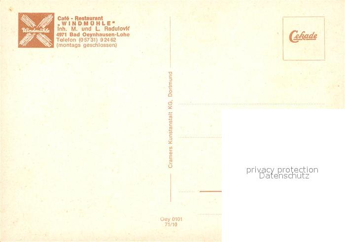 73093707 Bad Oeynhausen Cafe Windmuehle postalisch nicht gelaufen Erhaltung siehe scans [NatalD47] KatCode: 11110005770004