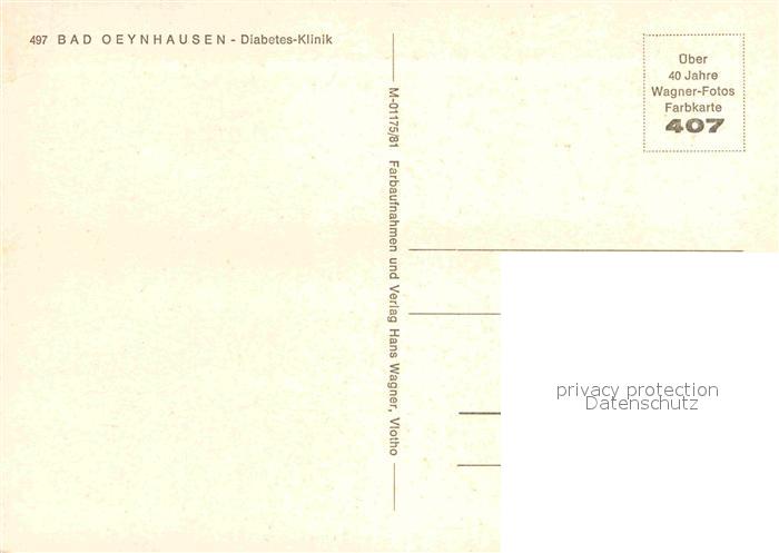 72907986 Bad Oeynhausen Diabetes Klinik postalisch nicht gelaufen Erhaltung siehe scans [FriedD77] KatCode: 11110005770004