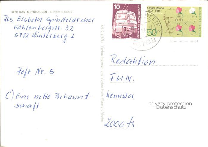72290033 alte Postkarte Bad Oeynhausen Diabetis- Klinik postalisch gelaufen Erhaltung siehe scans KatCode: 11110005770004