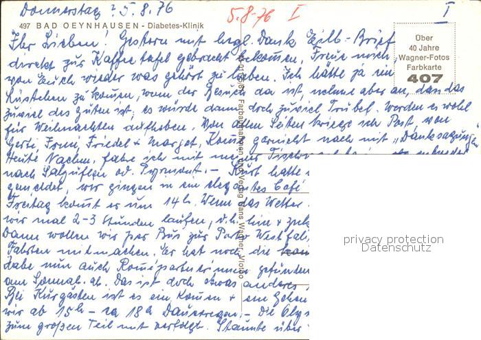 72225618 Bad Oeynhausen Diabetis Klinik postalisch nicht gelaufen Erhaltung siehe scans KatCode: 11110005770004
