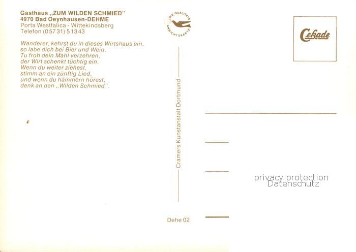 73829678 Bad Oeynhausen Gasthaus Zum wilden Schmied postalisch nicht gelaufen Erhaltung siehe scans [FriedD77] KatCode: 11110005770004