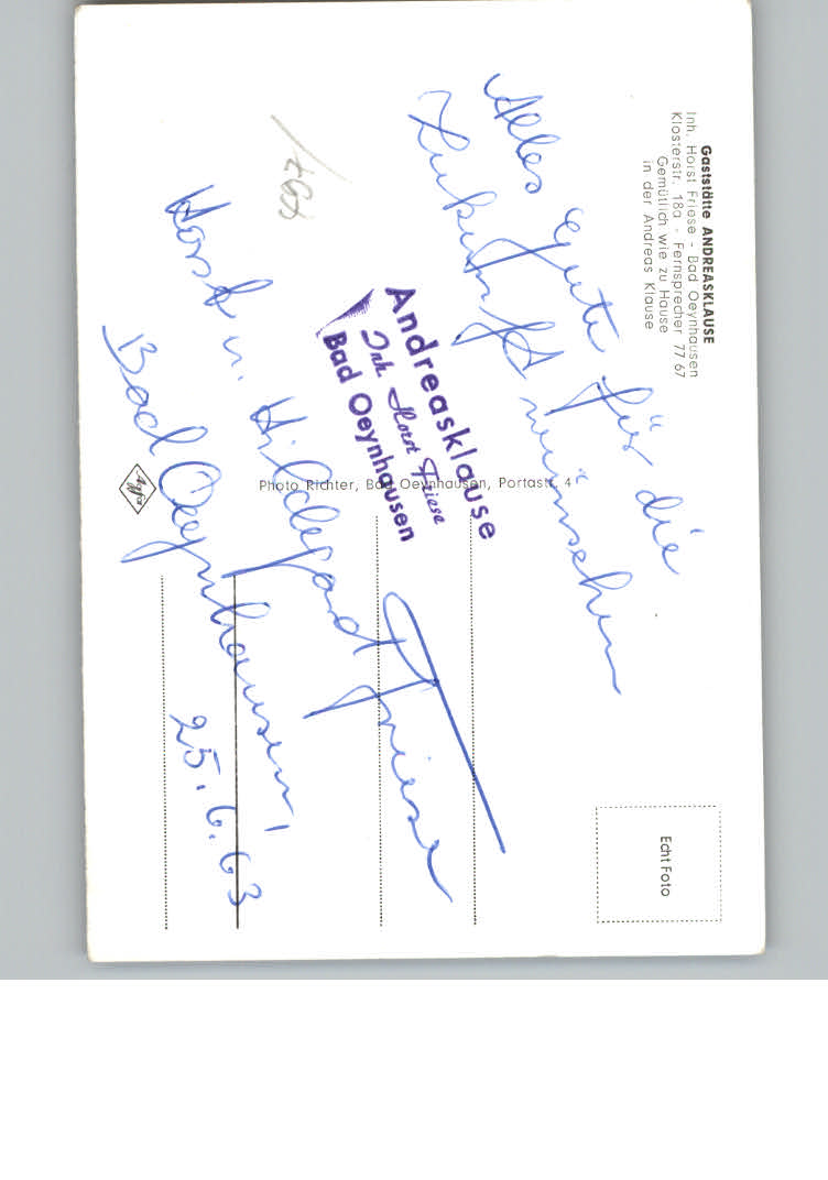 31136601 Bad Oeynhausen Gaststaette Andreasklause postalisch nicht gelaufen KatCode: