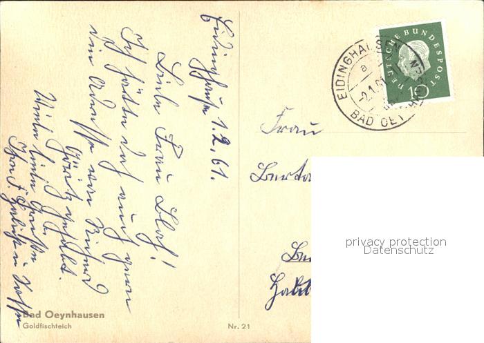 72522208 alte Postkarte Bad Oeynhausen Goldfischteich postalisch gelaufen Erhaltung siehe scans KatCode: 11110005770004