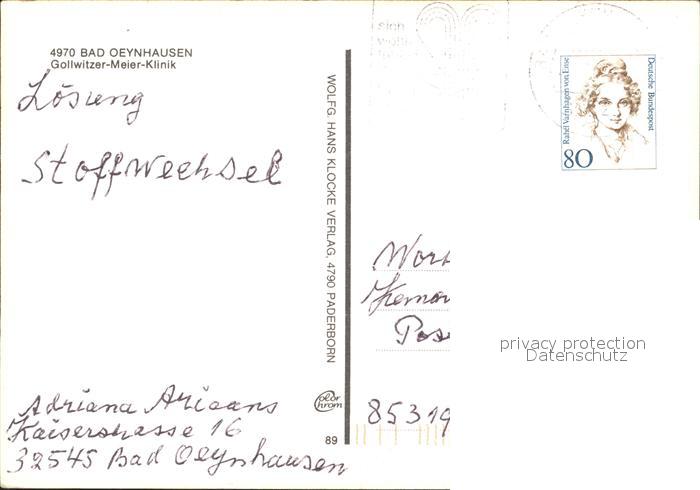 72391341 Bad Oeynhausen Gollwitzer Meier Klinik postalisch nicht gelaufen Erhaltung siehe scans Alte Ansichtskarte Postkarte Andr Katcode 11110005770004