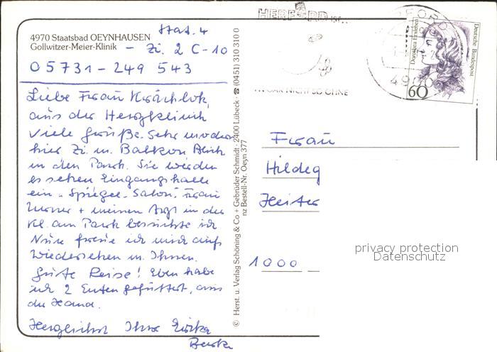 72225619 alte Postkarte Bad Oeynhausen Golwitzer Meier Klinik postalisch gelaufen Erhaltung siehe scans KatCode: 11110005770004
