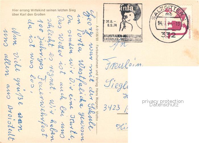 73126829 alte Postkarte Bad Oeynhausen Grosser Weserbogen Rehme und Werre Muendung Westfaelische Pforte Landschaftspanorama Weser und Rehme Autobahn nach Berlin postalisch gelaufen Erhaltung siehe scans [FriedD77] KatCode: 11110005770004