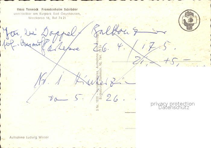 72045660 Bad Oeynhausen Haus Tanneck Fremdenheim Schroeder postalisch nicht gelaufen Erhaltung siehe scans KatCode: 11110005770004