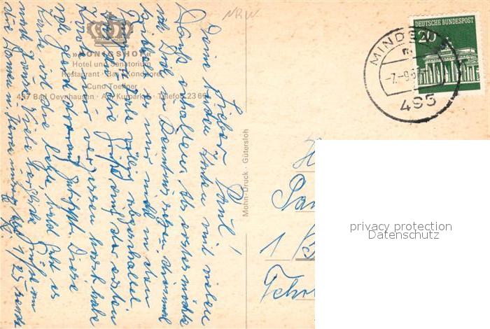 73089101 alte Postkarte Bad Oeynhausen Hotel Koenigshof postalisch gelaufen Erhaltung siehe scans [PaolaD17] KatCode: 11110005770004