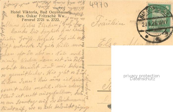 73703949 alte Postkarte Bad Oeynhausen Hotel Restaurant Viktoria Innen postalisch gelaufen Erhaltung siehe scans [LiesaD40] KatCode: 11110005770004