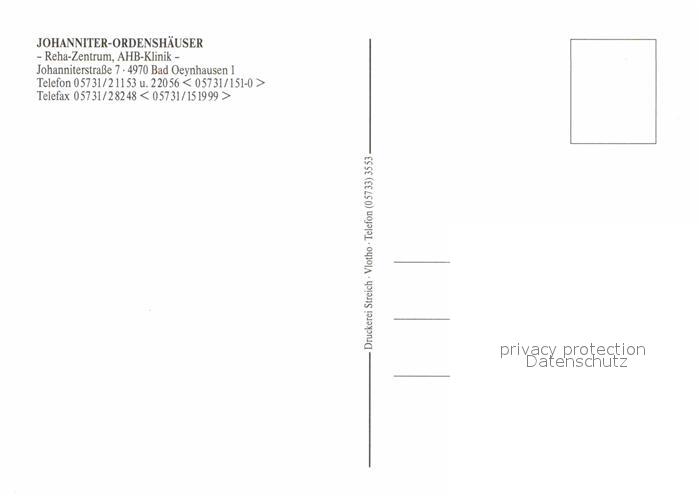 72861709 Bad Oeynhausen Johanniter Ordenshaeuser Rehazentrum AHB Klinik postalisch nicht gelaufen Erhaltung siehe scans [FriedD77] KatCode: 11110005770004