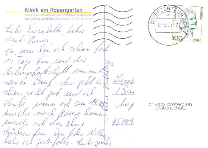 73333094 alte Postkarte Bad Oeynhausen Klinik am Rosengarten postalisch gelaufen Erhaltung siehe scans [LiesaD40] KatCode: 11110005770004