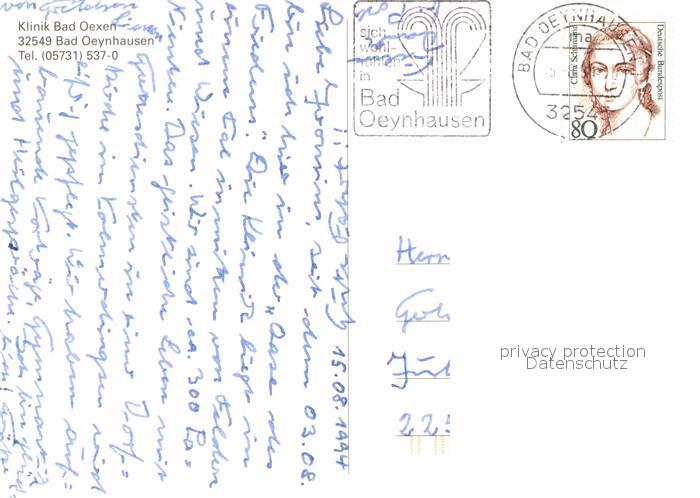 72961416 alte Postkarte Bad Oeynhausen Klinik Bad Oexen postalisch gelaufen Erhaltung siehe scans [PaolaD17] KatCode: 11110005770004