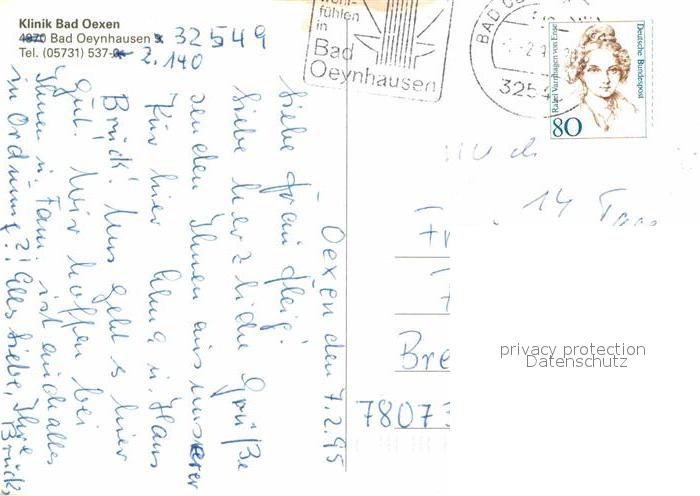 72855368 alte Postkarte Bad Oeynhausen Klinik Bad Oexen Park Teich postalisch gelaufen Erhaltung siehe scans [WerneD78] KatCode: 11110005770004