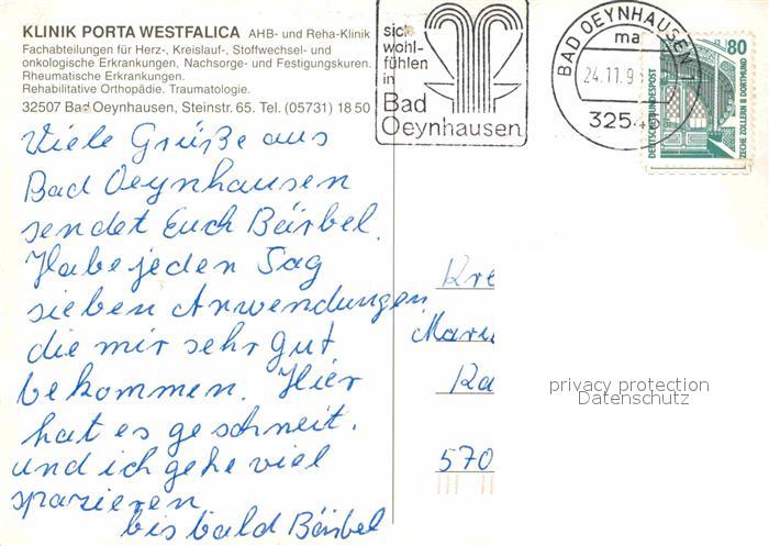 72785715 alte Postkarte Bad Oeynhausen Klinik Porta Westfalica Schwimmbad Turnhalle postalisch gelaufen Erhaltung siehe scans [LiesaD40] KatCode: 11110005770004