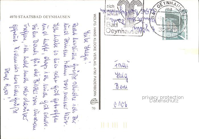 72369865 alte Postkarte Bad Oeynhausen Klinik Wandelhalle Rosengarten Kurhaus Casino Sprudel Museum Kurpark Bewegungszentrum postalisch gelaufen Erhaltung siehe scans KatCode: 11110005770004