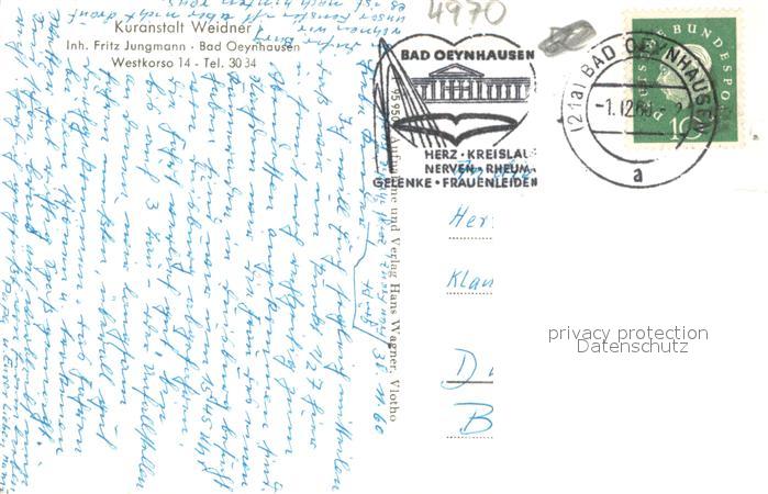 73694021 alte Postkarte Bad Oeynhausen Kuranstalt Weidner postalisch gelaufen Erhaltung siehe scans [WerneD78] KatCode: 11110005770004