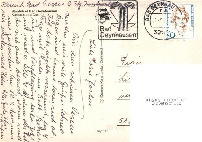 73020225 alte Postkarte Bad Oeynhausen Kurhaus Casino postalisch gelaufen Erhaltung siehe scans [NatalD47] KatCode: 11110005770004