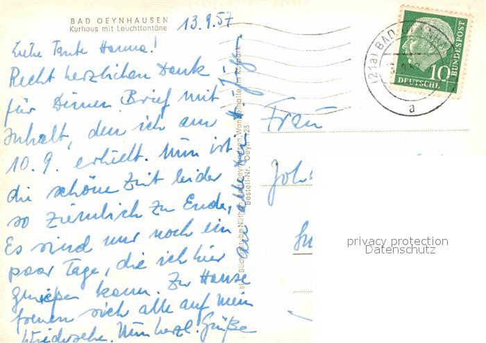 72725097 alte Postkarte Bad Oeynhausen Kurhaus mit Leuchtfontaene postalisch gelaufen Erhaltung siehe scans [WerneD78] KatCode: 11110005770004