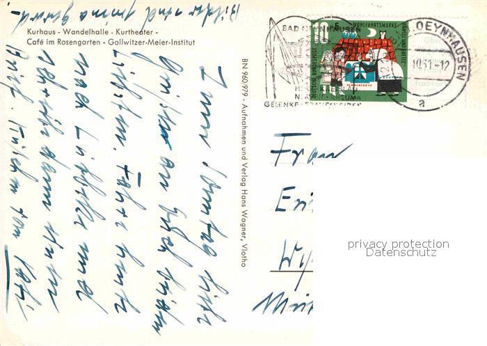 72905398 alte Postkarte Bad Oeynhausen Kurhaus Wandelhalle Kurtheater Cafe Rosengarten Gollwitzer-Meier-Institut postalisch gelaufen Erhaltung siehe scans [NatalD47] KatCode: 11110005770004