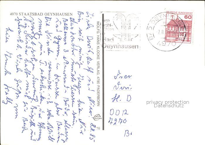 72522585 alte Postkarte Bad Oeynhausen Kurklinik am Park Wandelhalle Heimatmuseum Jordansprudel postalisch gelaufen Erhaltung siehe scans KatCode: 11110005770004