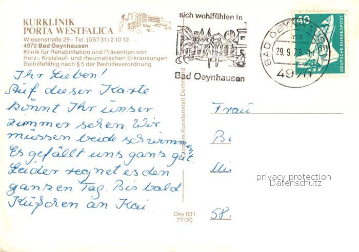73090245 alte Postkarte Bad Oeynhausen Kurklinik Porta Westfalica postalisch gelaufen Erhaltung siehe scans [PaolaD17] KatCode: 11110005770004