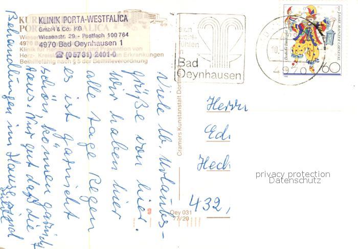 73641010 alte Postkarte Bad Oeynhausen Kurklinik Porta Westfalica Speisesaal Hallenbad Zimmer postalisch gelaufen Erhaltung siehe scans [WerneD78] KatCode: 11110005770004