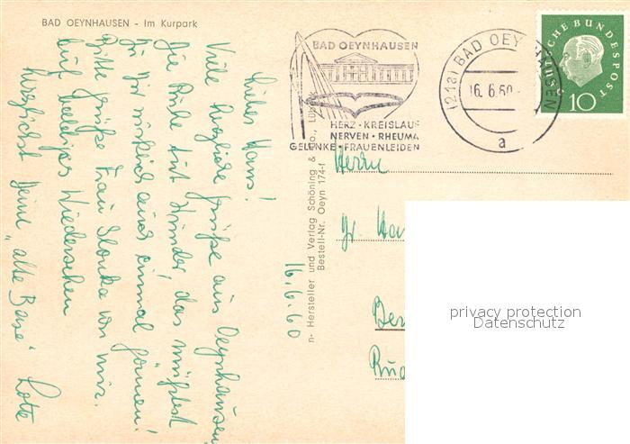 72933727 alte Postkarte Bad Oeynhausen Kurpark postalisch gelaufen Erhaltung siehe scans [WerneD78] KatCode: 11110005770004
