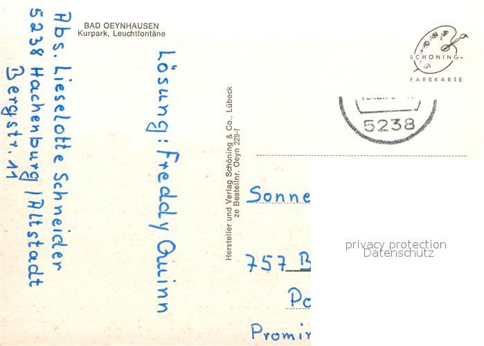 72930727 alte Postkarte Bad Oeynhausen Kurpark Leuchtfontaene postalisch gelaufen Erhaltung siehe scans [LiesaD40] KatCode: 11110005770004