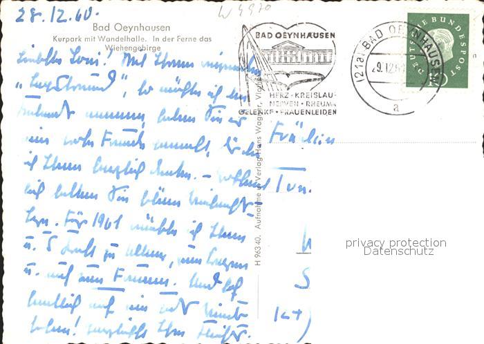 72063911 alte Postkarte Bad Oeynhausen Kurpark mit Wandelhalle Wiehengebirge postalisch gelaufen Erhaltung siehe scans KatCode: 11110005770004