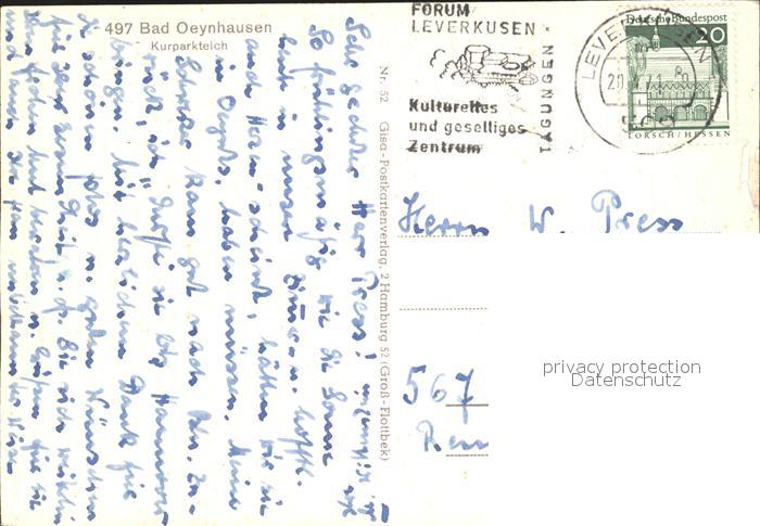 72063963 alte Postkarte Bad Oeynhausen Kurparkteich postalisch gelaufen Erhaltung siehe scans KatCode: 11110005770004