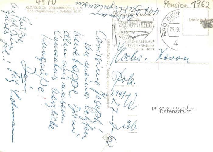 73695075 alte Postkarte Bad Oeynhausen Kurpension Bernardusheim postalisch gelaufen Erhaltung siehe scans [WerneD78] KatCode: 11110005770004