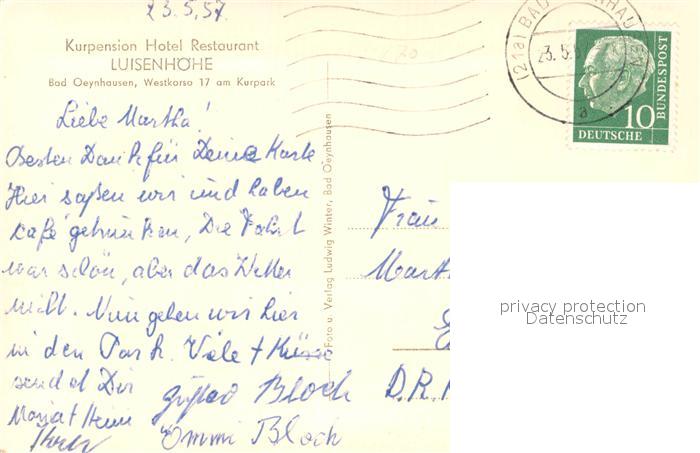 73640992 alte Postkarte Bad Oeynhausen Kurpension Hotel Restaurant Luisenhoehe postalisch gelaufen Erhaltung siehe scans [WerneD78] KatCode: 11110005770004