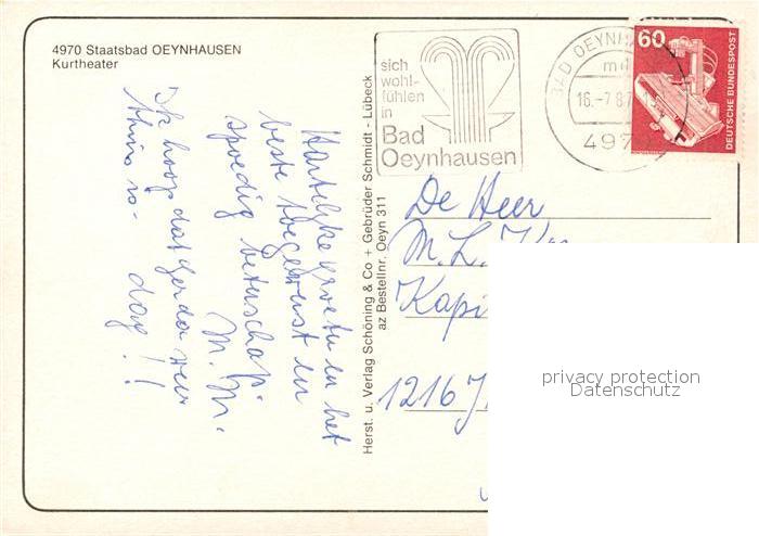 73047697 alte Postkarte Bad Oeynhausen Kurtheater postalisch gelaufen Erhaltung siehe scans [WerneD78] KatCode: 11110005770004