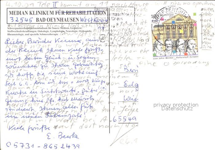 72297441 alte Postkarte Bad Oeynhausen Median Klinikum fuer Rehabilitation postalisch gelaufen Erhaltung siehe scans KatCode: 11110005770004