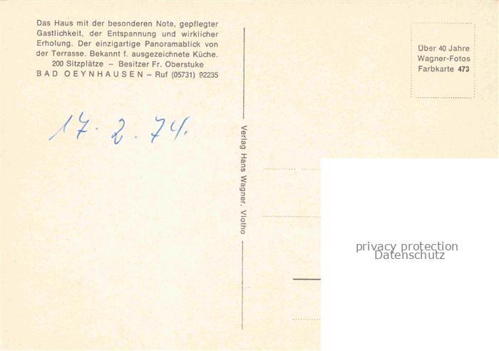 74043453 BAD OEYNHAUSEN NRW Pension Hotel Café Waldrose Gastraum Garten postalisch nicht gelaufen Erhaltung siehe scans [FriedD77] KatCode: 11110005770004