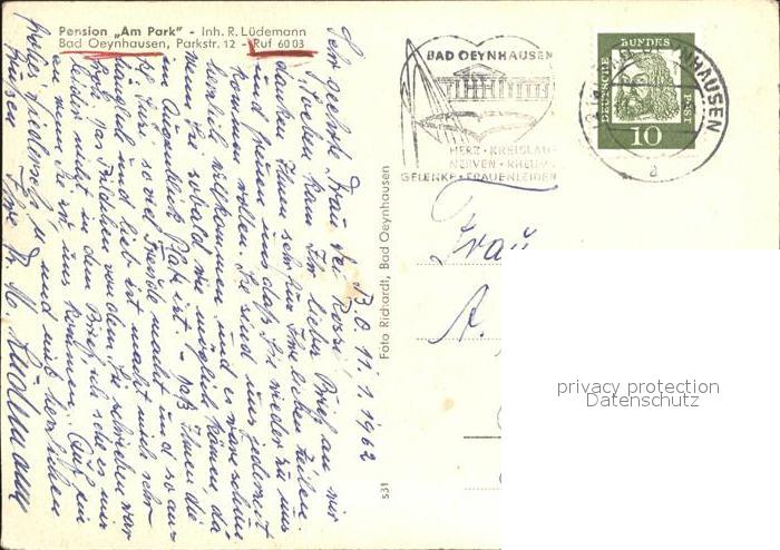 71931036 alte Postkarte Bad Oeynhausen Pension Am Park postalisch gelaufen KatCode: 11110005770004