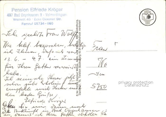 72110933 Bad Oeynhausen Pension Kroeger postalisch nicht gelaufen Erhaltung siehe scans KatCode: 11110005770004