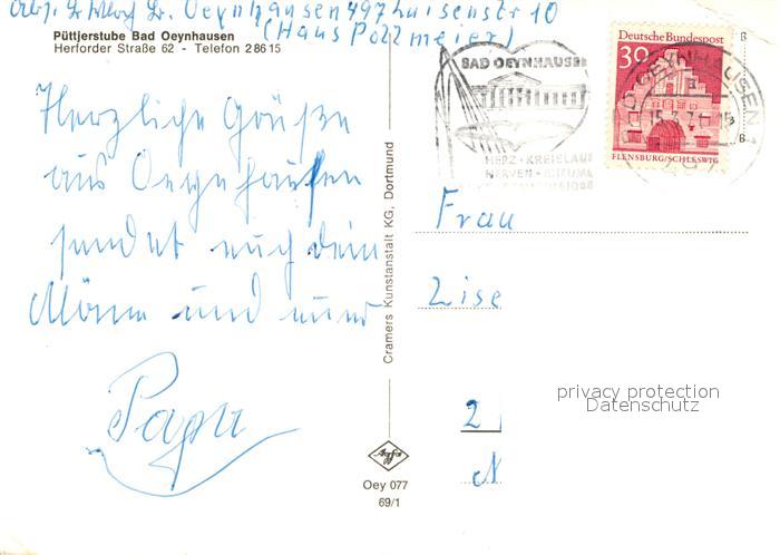 73611160 alte Postkarte Bad Oeynhausen Puettjerstube Bar Gaststube postalisch gelaufen Erhaltung siehe scans [WerneD78] KatCode: 11110005770004