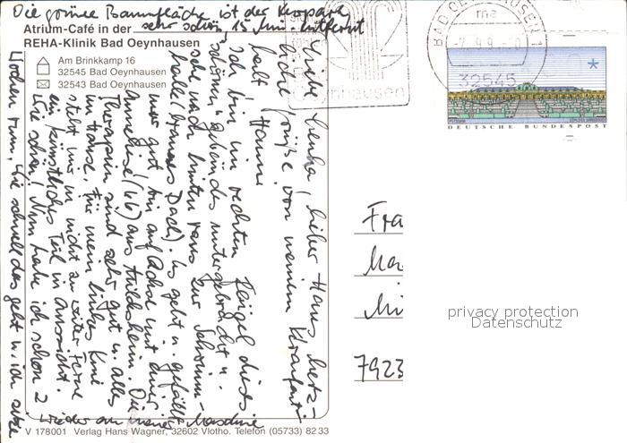 72614541 alte Postkarte Bad Oeynhausen Rehaklinik Atrium Cafe Fliegeraufnahme postalisch gelaufen Erhaltung siehe scans [WerneD78] KatCode: 11110005770004