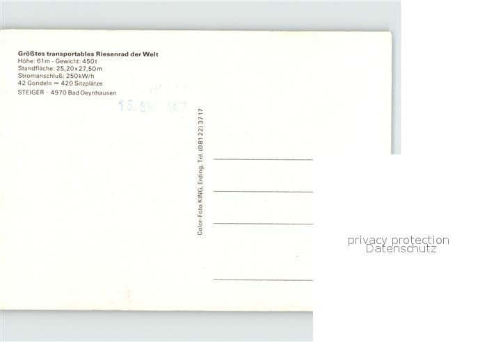 72431831 Bad Oeynhausen Riesenrad postalisch nicht gelaufen Erhaltung siehe scans KatCode: 11110005770004