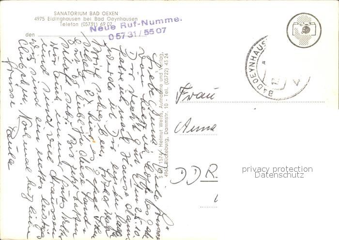 72063655 alte Postkarte Bad Oeynhausen Sanatorium Bad Oexen postalisch gelaufen Erhaltung siehe scans KatCode: 11110005770004