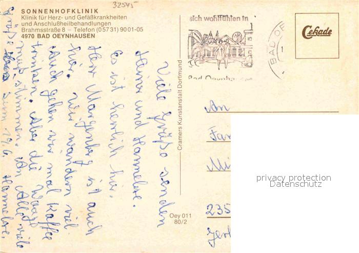 72889917 alte Postkarte Bad Oeynhausen Sonnenhofklinik Hallenbad postalisch gelaufen Erhaltung siehe scans [FriedD77] KatCode: 11110005770004