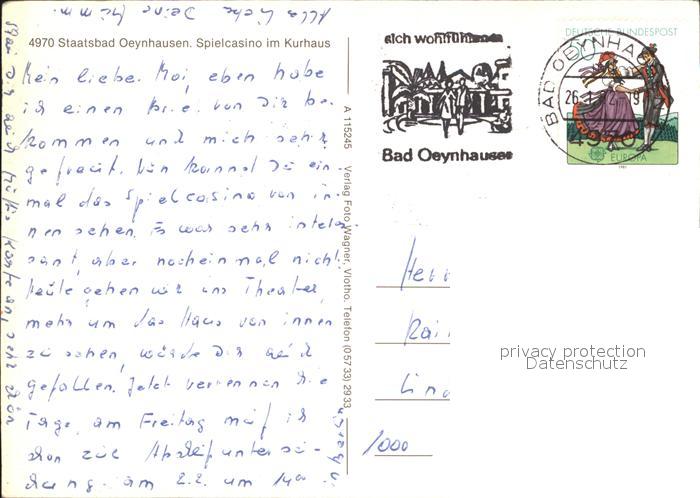71984092 alte Postkarte Bad Oeynhausen Spielcasino postalisch gelaufen Erhaltung siehe scans KatCode: 11110005770004
