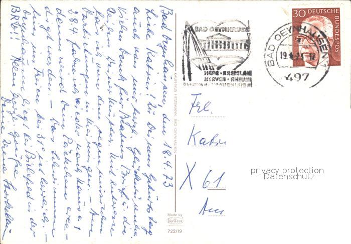 72469289 alte Postkarte Bad Oeynhausen Staatsbad Thermalsole Bewegungsbad postalisch gelaufen Erhaltung siehe scans KatCode: 11110005770004
